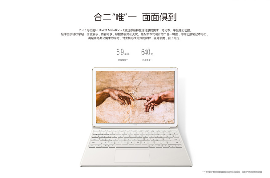 HUAWEI MateBook E 主機X 1HUAWEI MateBook E 二合一鍵盤X 1電源適配器X 1USB-C 數(shù)據(jù)充電線X 1Huawei MateDock 2 擴展塢X 1快速入門&保修證書X 1