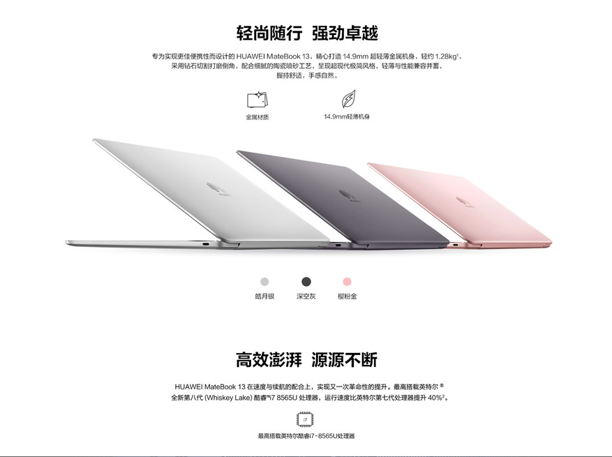 HUAWEI MateBook 13 主機(jī) X 1HUAWEI USB-C 電源適配器65W X 1電源適配器線(USB-C) X 1USB-C 轉(zhuǎn) USB-A 轉(zhuǎn)接線 X 1快速入門 X 1保修卡 X 1Huawei Share 3.0 一碰傳快速入門 X 1S/N三聯(lián)貼標(biāo)簽 X 1