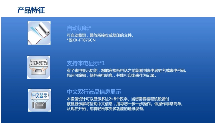 參數(shù) [品牌] 松下(Panasonic) [型號(hào)] KX-FT876CN [商品毛重] 3.5kg