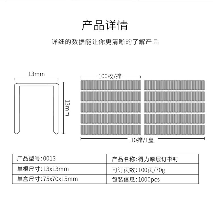 參數(shù) [品牌] 得力(deli) [型號(hào)] 得力0013 [商品毛重] 0.52kg