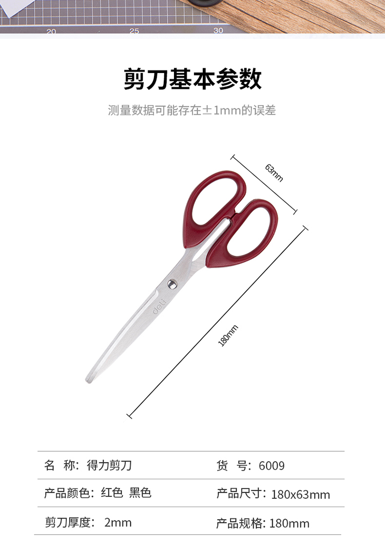 參數(shù) [品牌] 得力(deli) [型號(hào)] 得力180mm辦公剪刀 [商品毛重] 60.00g